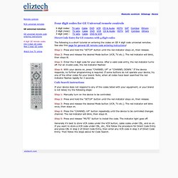 General Electric Universal Remote Manual Codes TV and television manuals and free pdf instructions. Find the user manual you need for your TV and more at ManualsOnline. ... Retrieve Document